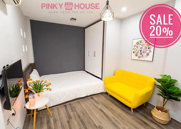 Pinky House Luxsury Apartment For Rentは、ハイバーチュン区地区にあり、フュージョンのThuc Duong Tinh Tamから歩いて5分以内です。